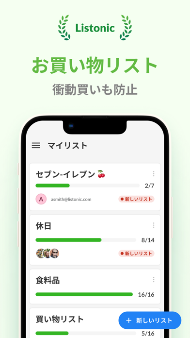 リストは複数作成して、目的ごとに使い分けられます。リストがどの程度埋まっているかもサムネイルで見られるため、優先度もつけやすいでしょう。またほかユーザーとの共有もできるので、共同で買い出しなどもできます。