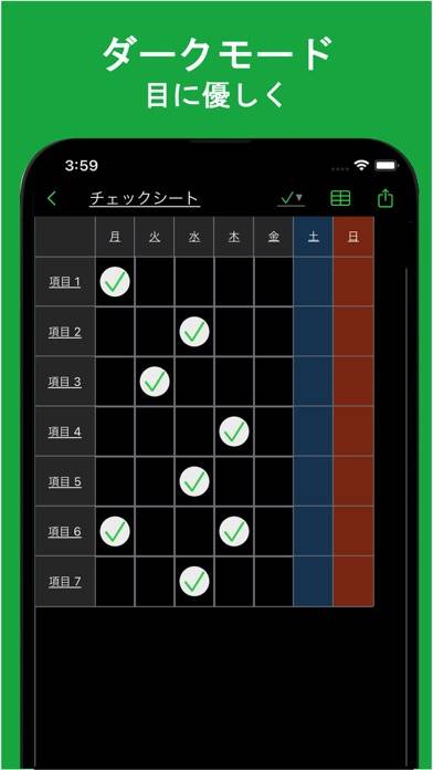 スマホで簡単にチェックシートを作成できるアプリ。シンプルさと彩りを両立させたデザインが特徴です。セルに表示できる記号は丸、バツ、三角やチェックマークなど多彩。表計算など複雑な機能は不要で、チェックなど簡単な記録をしたい人におすすめです。