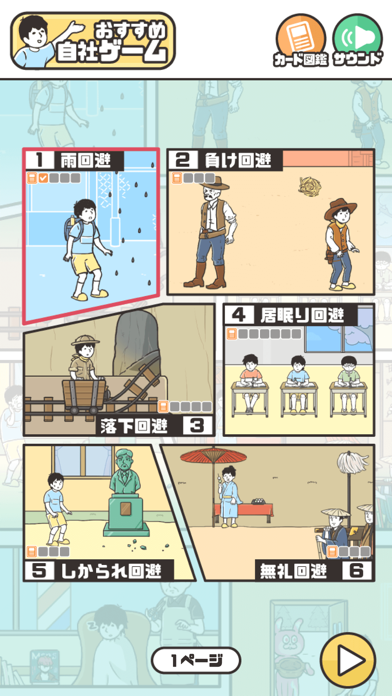 回避の失敗方法を見つけるのが、本作ならではの醍醐味。1ステージに複数の回避方法があり、発見するとカード図鑑にコレクションされます。何度も同じステージに挑み、すべての回避方法を見つけてみましょう。