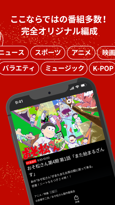 - 放送が終わった番組や懐かしのアニメ・映画など見逃し配信が充実