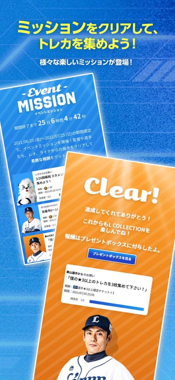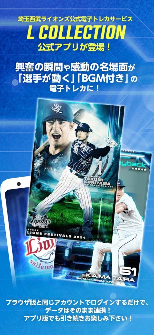 「埼玉西武ライオンズ」の公式トレカアプリ。ライオンズの選手が描かれた電子トレカを入手・管理できます。名場面やBGMが流れるトレカも出現。活躍選手の予想や自己流ナインの作成など、トレカ集め以外の要素もあります。