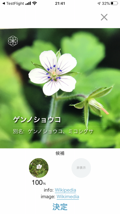 - 花に似た葉や風景が写りこむと判定が難しい場合がある