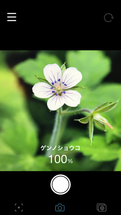 撮影モードでは、ひとつの花をじっくり撮影しながら名前と写真を一緒に記録できます。見つけた花を一枚ずつ保存していけば、自分だけの花図鑑としても活用できます。写真には花の名前も一緒に写るため、あとから見返すのにもぴったりです。
