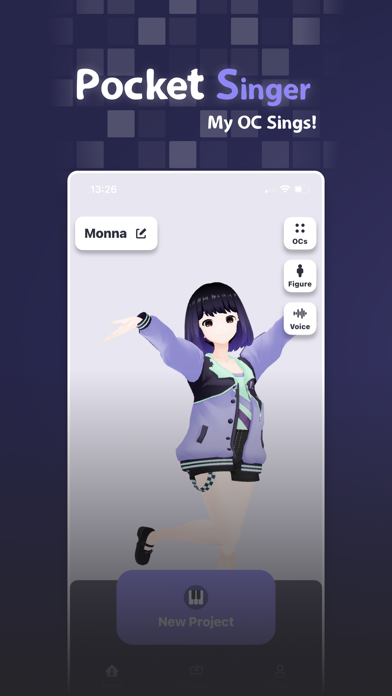 スマホで歌声・キャラクター・楽曲を一括で作れるアプリ。まずは、さまざまな声質をミックスしてオリジナルの歌声を作ります。次に、3Dのオリジナルキャラクターを作成。髪型や身長はもちろん、手足の長さや腰の高さまで細かく調整できます。最後に、オリキャラの声を用いて楽曲制作。日本語の歌詞にも対応しています。