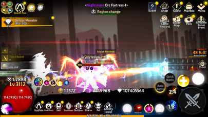 アクションが爽快でグラも音楽もめちゃカッコイイです!ベースは放置ゲームですが、ガチャ石もたくさんもらえて、テンポよく進めていけるのでストレスがないです!武器やスキルの設定でエフェクトも変わるので、レベル上がってくると爽快感アガります!