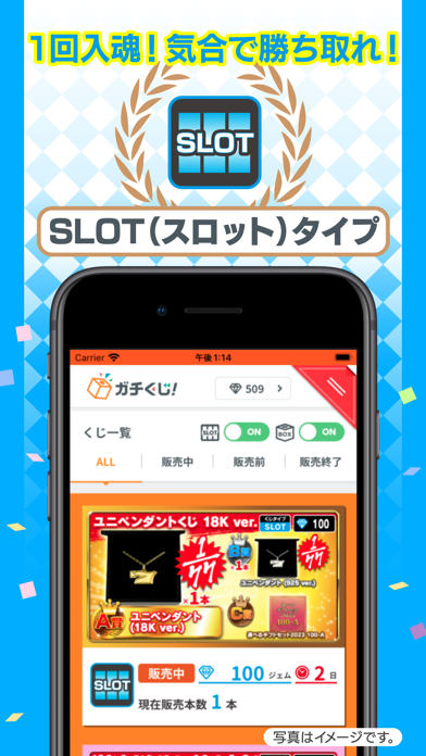 - 2種のくじを搭載。1回入魂のスロット、確率アップを狙うBOXタイプ
