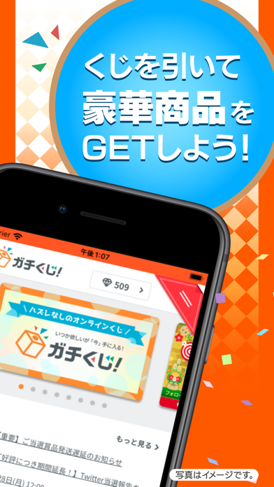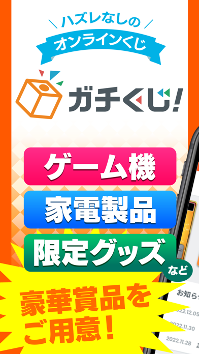 - ゲーム機などの豪華賞品が並ぶ、有料のくじ引きに挑戦できるアプリ