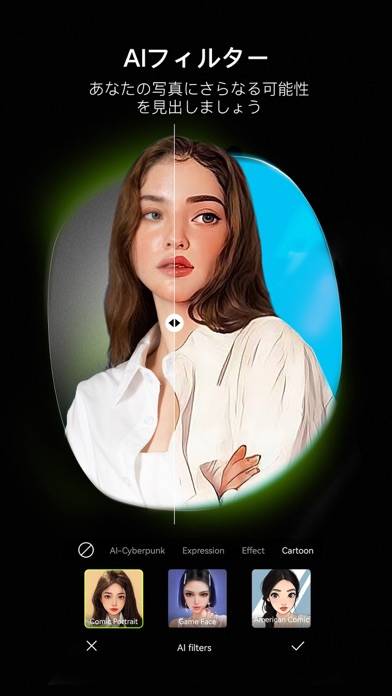 - フィルター数が豊富。無表情を笑顔に変えるなど、表情の変更も可能