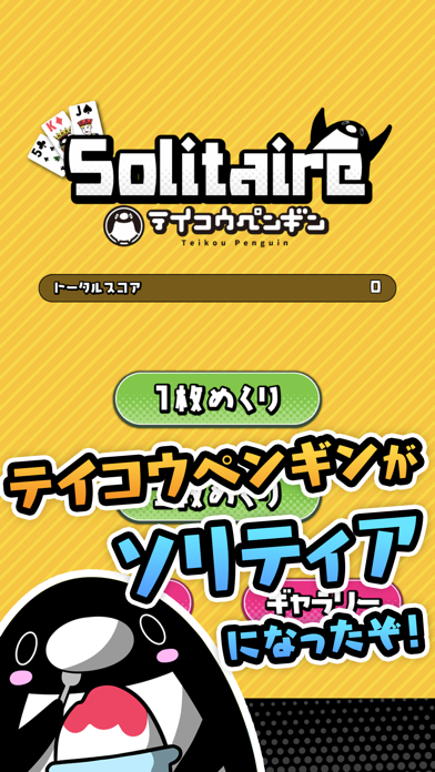 『テイコウペンギン』だらけのソリティア! オフラインかつ無料で遊べる
