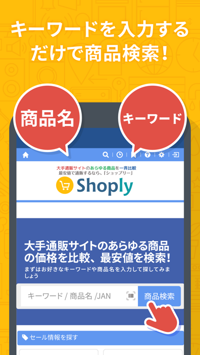 - Amazon、Yahoo!、楽天市場、LOHACOを一斉検索可能。お金も時間も節約