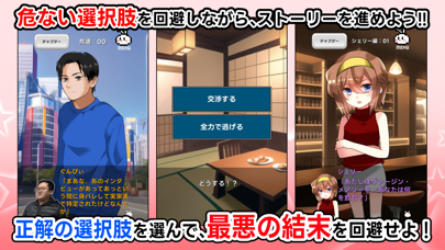 選んだ選択肢で、出会うヒロインや展開が分岐するマルチエンディング仕様。間違った選択肢を選ぶと即座にバッドエンドに直行する、スリリングな物語を楽しめます。一度見たパートはチャプターメニューからジャンプできるので、読み返すときもスムーズ。