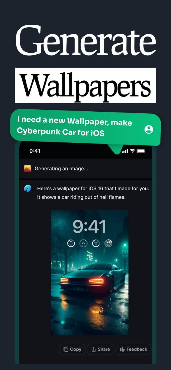 英会話練習、デザインのアイデア出しなど、やりたいことに特化したAIをすぐに見つけられます。「壁紙作成」「企画書アイデア」などのキーワードで検索するだけ。ひとりで悩んでいた問題が、まるで専門家に相談したかのようにスムーズに解決します。