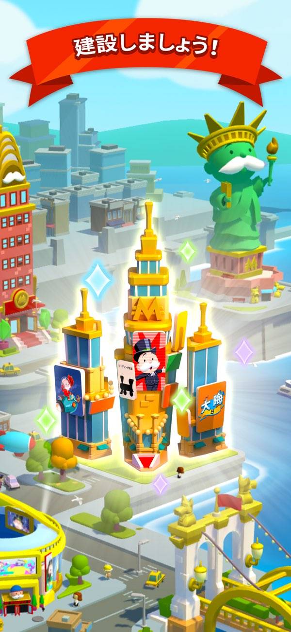 モノポリーの世界観でお金を稼ぎながら、街を完成させていくゲーム