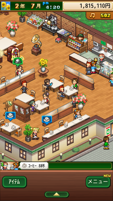 極上のリラックス空間を作る楽しみを、ゲームで体験。喫茶店を経営していく、のんびりしたシミュレーションゲームです。座席や設備を店に置いて自由にレイアウトし、あなただけの店を作り上げましょう。