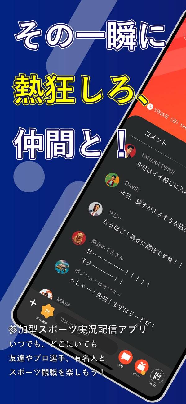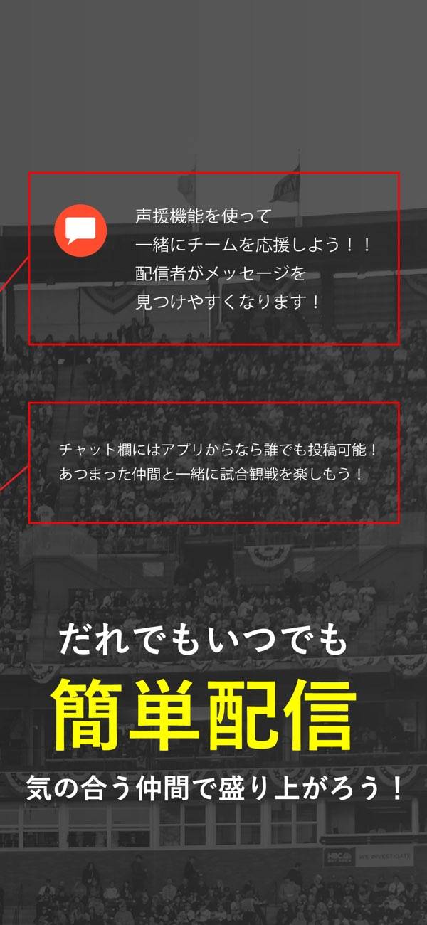 - スポーツの試合などをほかの人と一緒に楽しめる配信アプリ