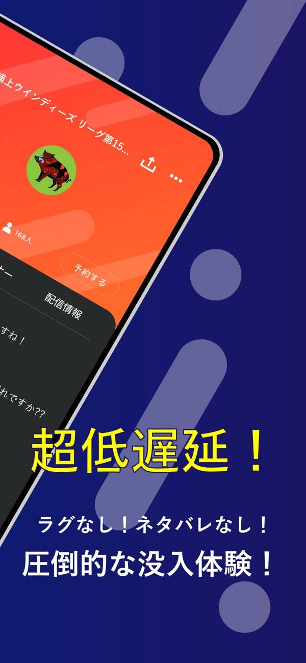 スポーツ観戦やアニメのリアタイを、ほかの人と一緒に楽しめる配信アプリ。TVや動画配信サービスなどで、同じコンテンツを観ながら仲間と盛り上がれます。SRD配信システムが搭載されており、配信者側の声がほぼタイムラグなしで聴けるため、実際に同じ場所にいるような感覚。また誰でも配信可能です。