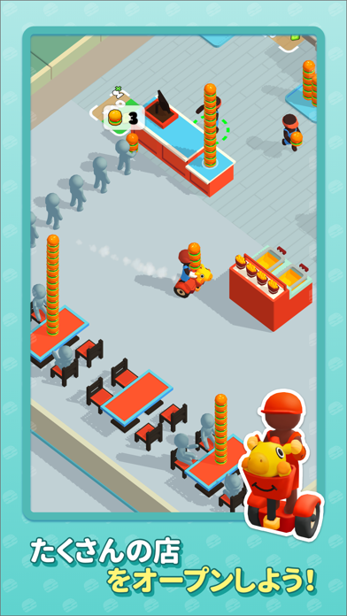 画面をタップしたままスライドすると、店員を操作できます。お金やハンバーガーに店員が触れると配膳や集金を行ってくれるので、手軽に遊べるのが魅力。動き続けて店を回していきましょう。