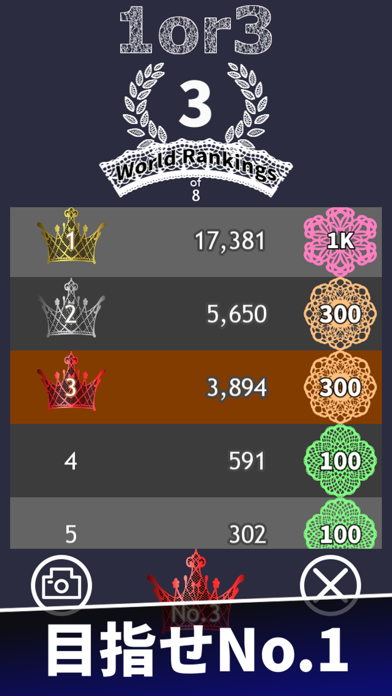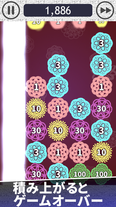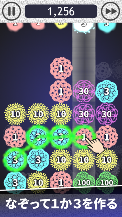 落ちてくるパズルをつなげて、先頭が1か3になる数字を作るゲームです。1、3、10、30、100、300、1000……と数字を増やしていき、自己ベストを出しましょう。時間経過でパズルの落ちる早さも変わり、難易度が増していきます。