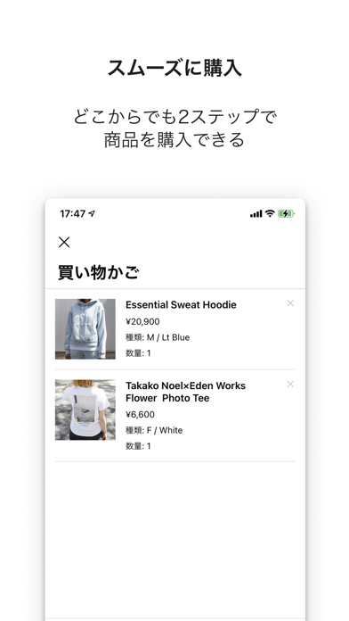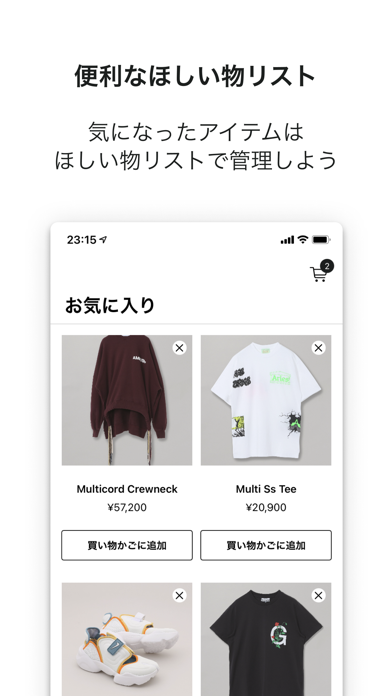 ストリートファッションやスニーカーを取りそろえた、通販アプリです。女性向けの服をメインに、さまざまなブランドのアイテムを掲載しています。