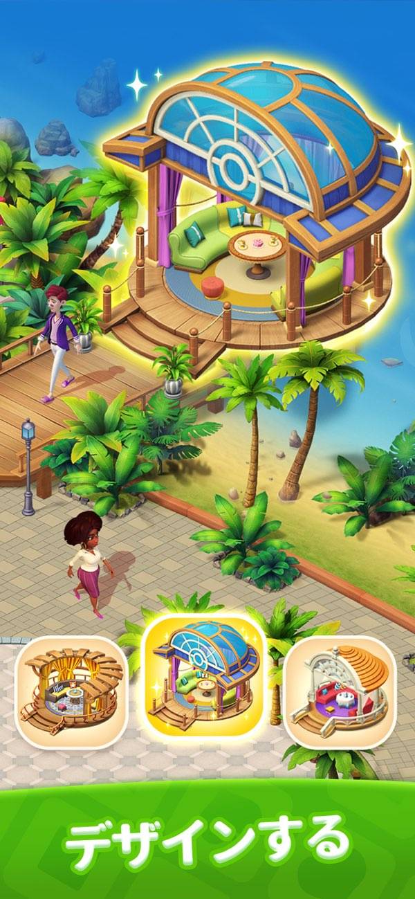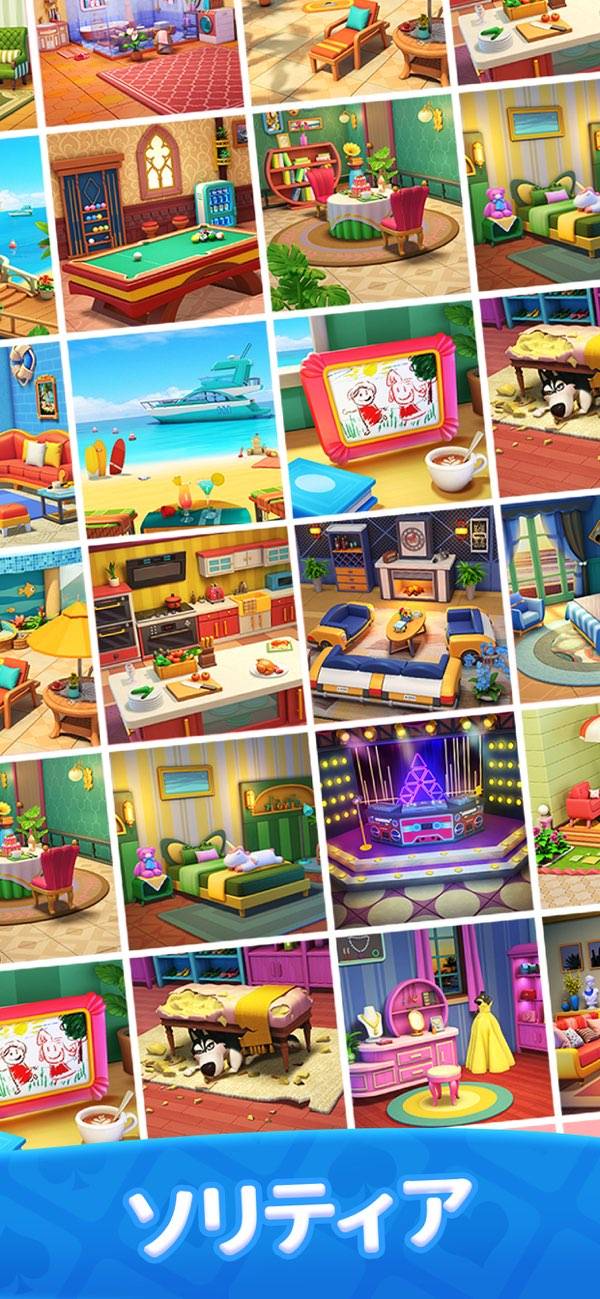 ソリティアで獲得したコインを使って、リゾートホテルをリノベーション。インテリアを設置したり、壁紙を貼り替えたりできます。同じインテリアでも複数のデザインから選択可能。自分好みのリゾートホテルを作りましょう。