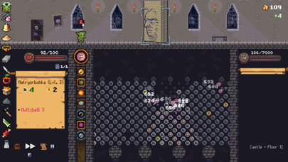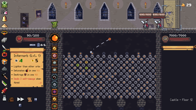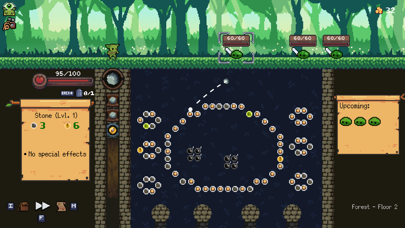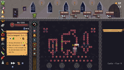 パチンコをベースにしたユニークなシステムが本作最大の特徴です。オーブ(石)を降下させ、たくさんのペグ(釘)に反射させるほどダメージが高くなるのが基本。オーブとペグにはたくさんの効果があり、組み合わせにより攻撃結果が千変万化していきます。