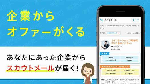 かんたんな質問に答えるだけで適職診断ができるのも本アプリの魅力です。適職テスト「エニアグラム」では自分の強みがわかります。さらにES・面接対策などの就活支援サービスが充実しているので、就活を有利に進められるでしょう。