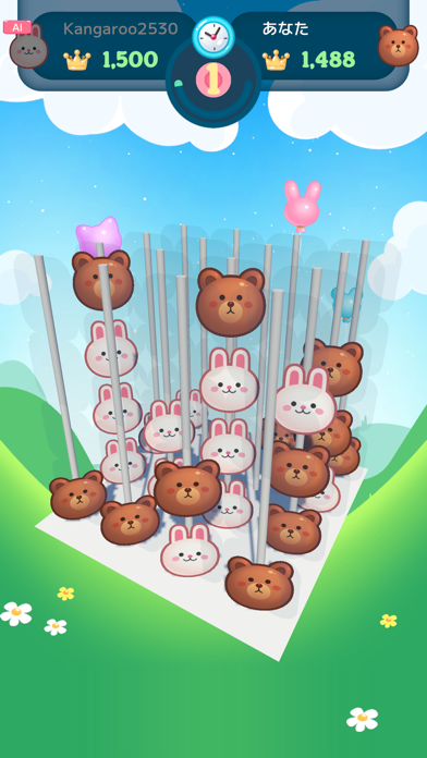 平面の五目並べを立体にアレンジした1対1のパズルゲームです。自分の駒を一列に並べたら勝利。奥行きも考慮して駒を置く立体ならではの戦略性もあります。動物の駒で親しみやすく、ルールもシンプルなので、子供の知育にもぴったり。ランダムマッチによるオンライン対戦も搭載されているため、大人でも楽しめます。