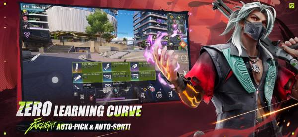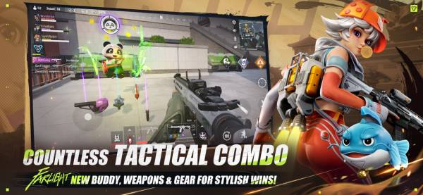 大人数の中で生き残りをかけて、4人1チームで仲間と協力して戦います。キャラクター選択は被り禁止のピック制。戦場では、銃やシールドなどを拾って戦力を整え、敵チームとの戦闘に備えます。キャラクターごとに、バリア展開や回復など使えるスキルが異なります。