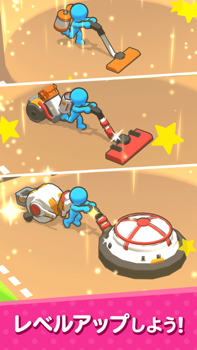 画面をスワイプして操作する、簡単な掃除ゲームです。集めたゴミは換金でき、掃除機をアップグレードすることが可能。しかしプレイ中にかなりの頻度で動画広告が出るので、スムーズにはプレイできません。掃除機でぐんぐんゴミを吸い取る爽快感は魅力的なので、刺さる人もいるでしょう。