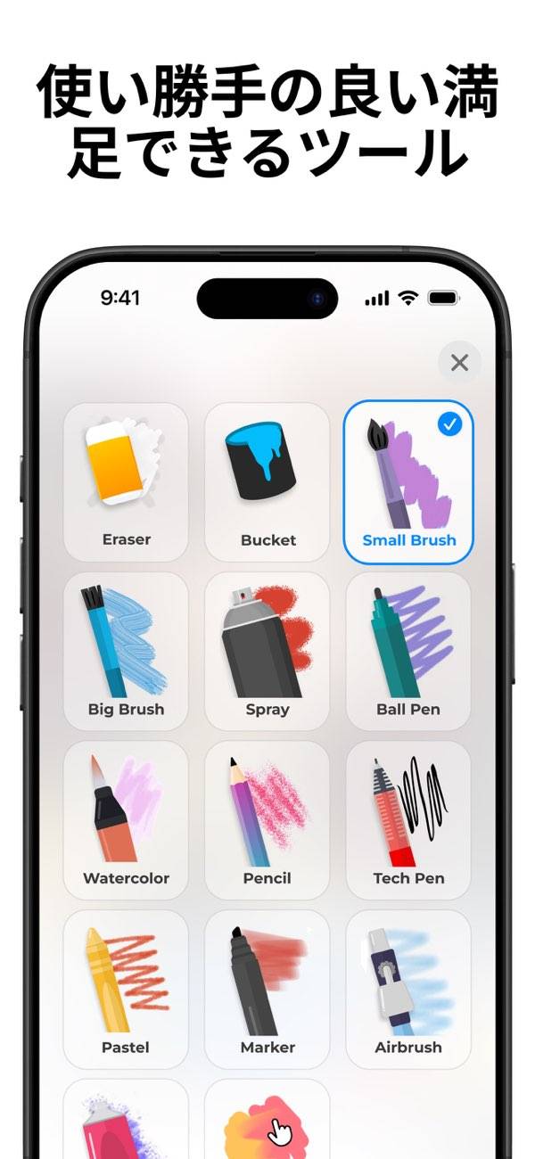 ワンタップで塗るのではなく、筆で陰影をつけられる塗り絵アプリ。筆先や色を選んで、自由な塗り絵を楽しめます。塗り絵の黒線はあえてはみ出させることもでき、よりオリジナリティに富んだ塗り方をすることも可能です。
