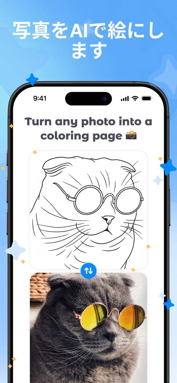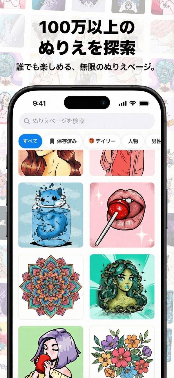 厚塗りができる塗り絵アプリです。単色だけでなくテクスチャが豊富で、宇宙や空の景色を使った幻想的な塗り絵が楽しめます。またワードを入力するだけで、AIがオリジナル塗り絵を作成。既存の塗り絵だけでは飽きてしまった人にぴったりな機能です。無限に遊べるので、塗り絵好きにはたまらないでしょう。
