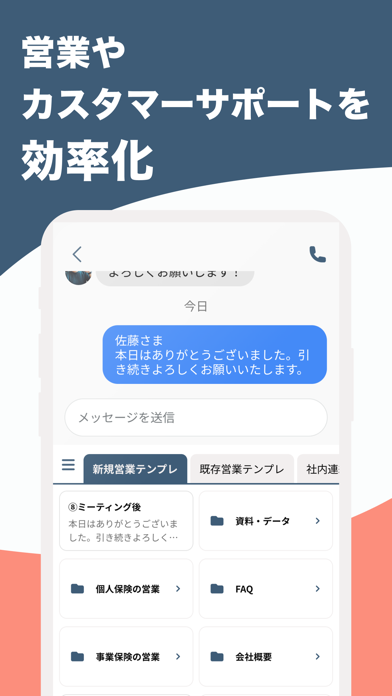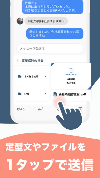- 定型文・画像・ファイルをキーボードからワンタップ送信。入力と添付の手間が減る