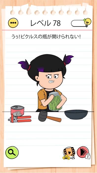 本アプリは「ヒラメキ」が重要な脳トレパズルです。問題文に騙されず、じっくり考えるのがクリアのコツ。制限時間がないため、じっくり考えられるのが嬉しいですね。イラストのコミカルな動きと怪しいBGMが、ワクワク感も盛り上げてくれます。