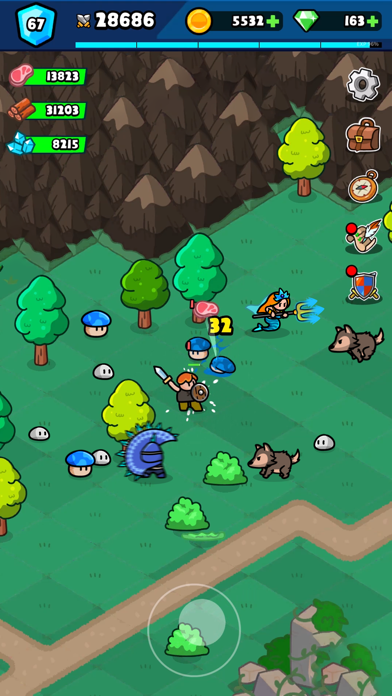 目の前の敵を倒し、資源を回収するハクスラ系RPG。敵は次から次へと湧いてくるので、敵を倒し続ける爽快感が味わえます。ダンジョンでは連続キルボーナスが発生し、敵を倒しやすくなるのが特徴。クエストをクリアしていくと新たなマップが解放されます。