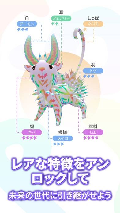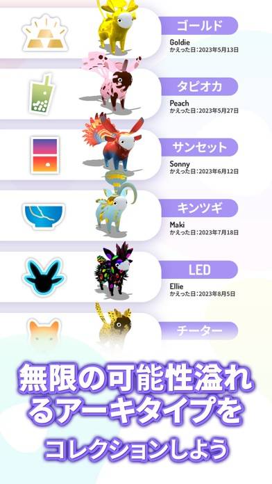 位置情報を利用して、ほかのプレイヤーのペリドットと交配できます。生まれたペリドットは、耳の形や模様など見た目の特徴を両親から遺伝。また、コレクション要素もあり、決まった特徴を持ったペリドットが誕生すると、ドットタイプの図鑑が埋まります。