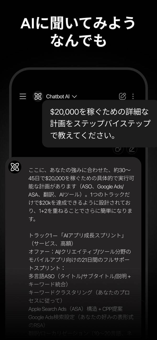 - ChatGPTをスマホで手軽に使うためのツール。AIに自由に質問