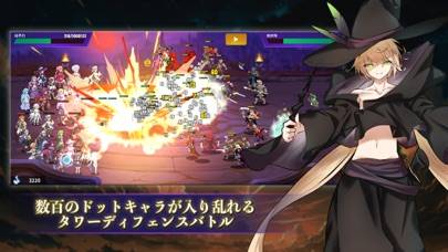 画面右から続々と襲ってくる敵を倒していきます。魔女の前にある青い結界石が破壊されるとゲームオーバー。攻撃は、基本的に魔女が自動で行います。魔女の必殺技となるアルティメットスキルを上手に使い、結界石が攻撃される前に敵を倒しましょう。