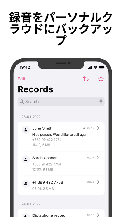 忘れがちな電話内容も、本アプリがしっかり記録。あらゆる通話を高品質で記録し、それぞれの会話について、いつ・どこで・誰と行われたのかを明確に把握可能です。会話内容を思い出す手間が省けますよ。有料プランに登録すれば、通話録音をクラウドにバックアップしたり、PINロックで録音を保護したりできます。さらに、通話の重要な部分にマーキングを付ける機能や、自分だけの特別な録音リストを作成することも可能です。