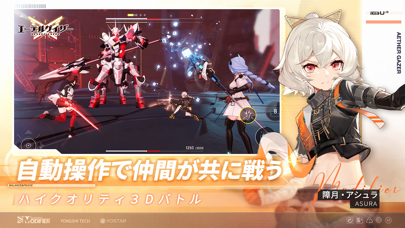 YostarとYongshiが開発した3DアクションRPG。仲間と連携するスタイリッシュなバトルが魅力です。3人1組のパーティーで、そのうち1人だけを操作して敵と戦います。「モディファイア」と呼ばれるキャラクターのチーム編成次第で、繰り出せる技が変わったり、追加効果を得られたりします。