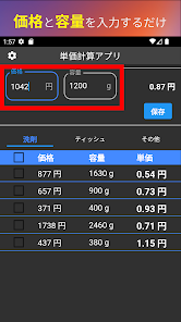 - 価格と容量を入力するだけ。商品の単価を手軽に計算できるアプリ