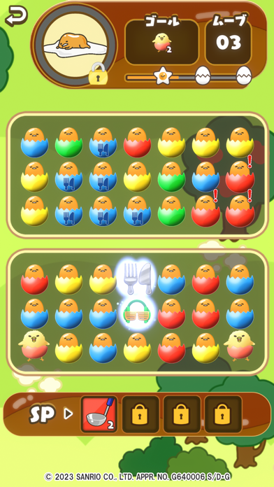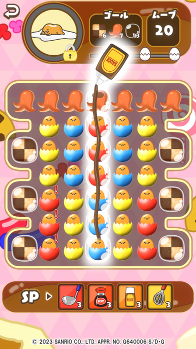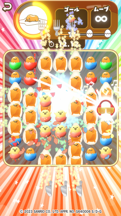 同じ色の「カラ」が2つ以上並んでいる箇所をタップすると消すことができます。シンプルな操作性でありながら、ムーブ数も決まっているためやり応えがあります。消すたびにぐでたまのボイスが聞けるため、子供から大人まで楽しく遊べるでしょう。