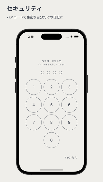テーマカラーやフォント、日記の表示設定など細部までカスタマイズが可能。無料でありながら、テーマカラーとフォントの種類が豊富です。さらに、4桁のパスコードによるロック機能も。プライベートな内容も安心して記録できます。