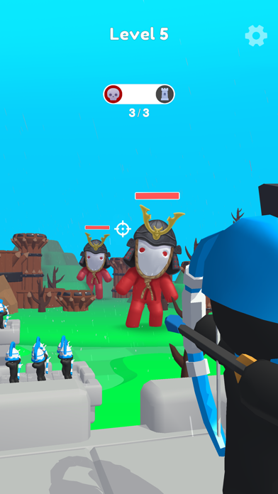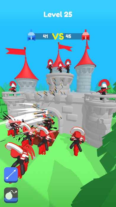 アーチャー同士で戦うステージ制のタワーディフェンス。矢の発射角度を調整して、反対側の城にいる敵に命中させて倒します。アーチャーの増員や合体を繰り返して、部隊を少しずつ強化していくのも醍醐味です。