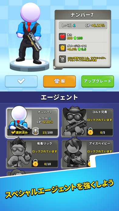 - 銃とエージェントを強化。ステージをクリアして強化素材をゲット