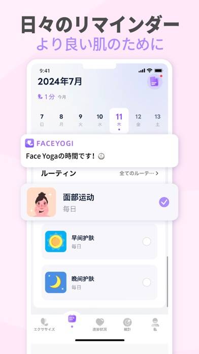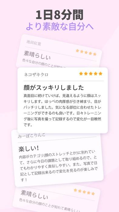 顔のエクササイズを手助けしてくれるアプリ。日本語の音声ガイド付きの動画を見ながら、顔の筋肉を鍛えられます。フェイスヨガは1日につき8分間と手軽で、長く続けやすいでしょう。