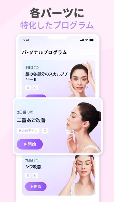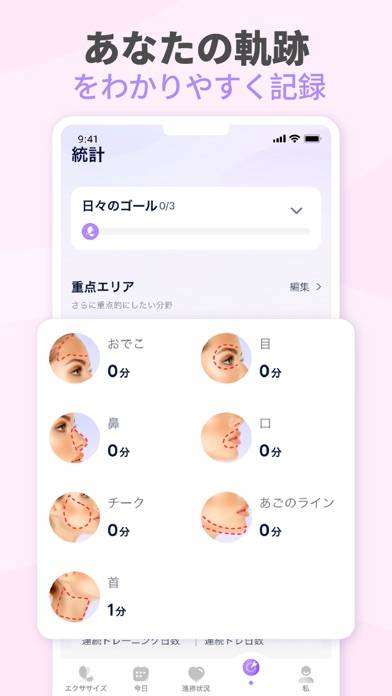 最初に、改善したい顔のパーツや手に入れたい効果を選択。肌のたるみやむくみなど、自分の悩みに合わせて毎日のエクササイズプログラムを提案してくれます。提案機能は有料プラン限定ですが、顔のシワ改善など元からあるプログラムの実施は可能です。