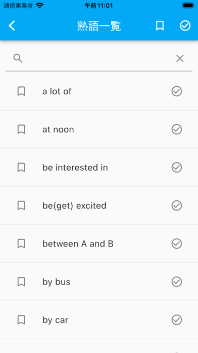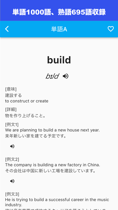 - 単語帳をめくるように単語と熟語を確認。単語や例文は音声付き