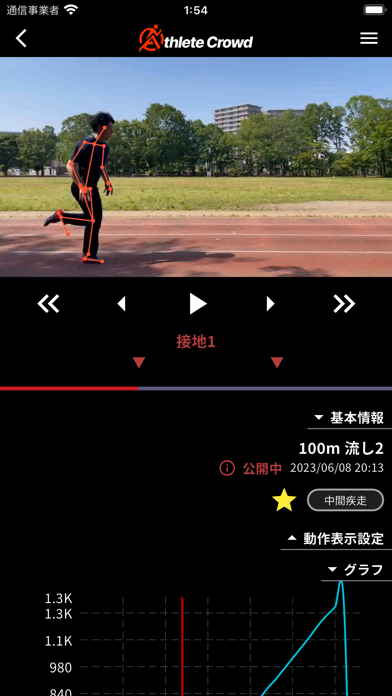 ユーザーがアップロードした動作の各部位の動きを詳細に解析可能。姿勢推定技術が使われており、各部位にマーカーが置かれるため、どのように動いているかが詳細にわかります。自分の動作をアップロードすれば、改善点を見つけやすいです。