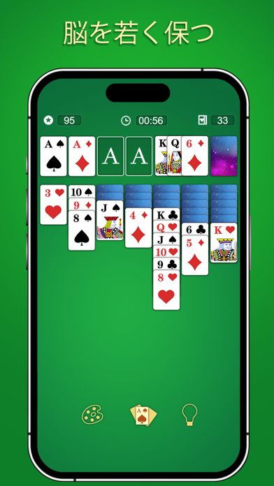 クラシックなソリティアを豊富な設定で楽しめるアプリです。3枚めくりやベガスルールにも対応していて、画面の向きなどの細かい設定も可能。自分好みのスタイルで遊べます。また、カードの表裏や背景は、最初から全部のデザインを選択可能。シンプルにソリティアを楽しみたい人にピッタリです。