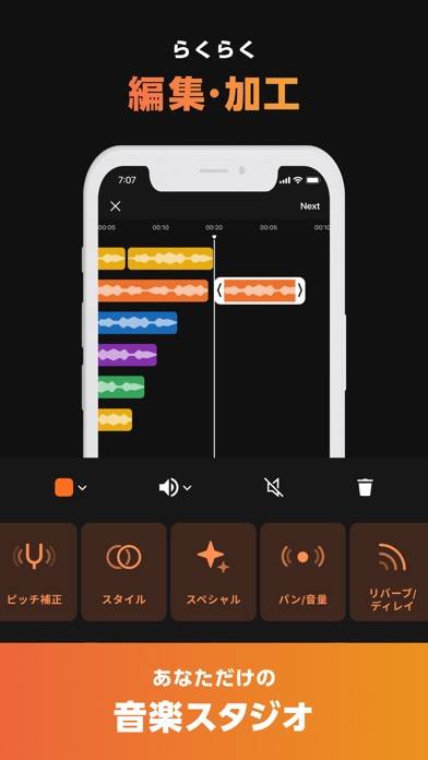 本格的なDAW並みの音楽編集が可能です。ピッチ補正やパート毎の編集など、専門的な知識がなくても使いこなせます。この機能を活用すれば、自分の歌唱を高品質で録音し、手軽にプロフェッショナルな作品を作り出すことができます。
